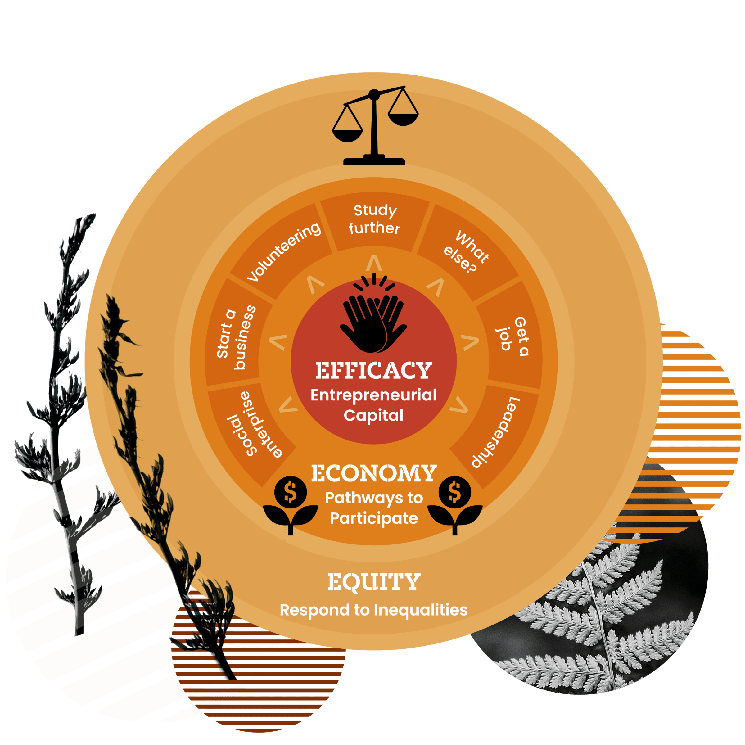 In order to improve outcomes for youth entrepreneurship initiatives, we needed to know what ‘good’ outcomes looked like. MYD, in collaboration with The Prince’s Trust Aotearoa New Zealand and Aotearoa New Zealand’s youth enterprise ecosystem, have developed a Youth Enterprise Outcomes framework - Efficacy, Economy and Equity.